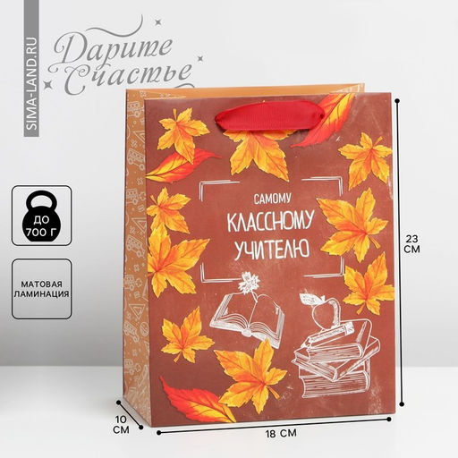 • Цена за 2 шт. Пакет подарочный ламинированный, упаковка, «Классному учителю», MS 18 х 23 х 10 см