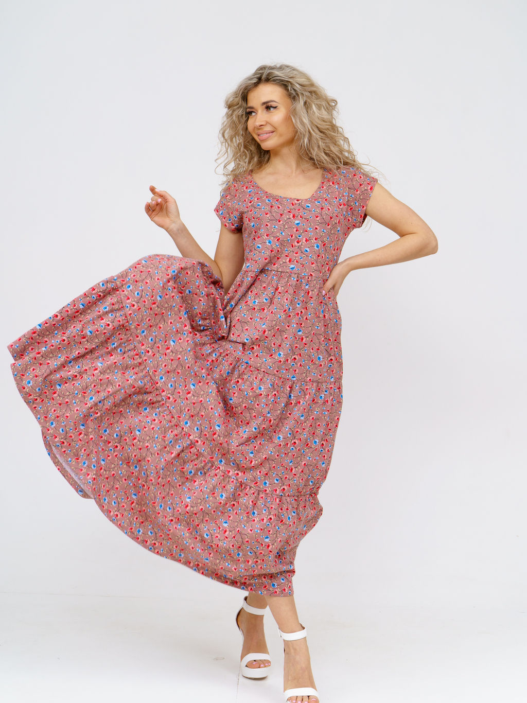 Обратите внимание: фото изделия сделано при искусственном освещении в студии, вживую - цвета могут немного отличаться. Модель выполнено из лёгкого, струящегося хлопкового полотна. Длинное платье в пол, горловина округлой формы, с цельнокроеным рукавом. Изделие многоярусное со сборкой, завышенной линией талии. Это женское летнее платье больших размеров настоящий символ летнего настроения и удобства для женщин, девушек и для девочек подростков любых размеров, в том числе и для полных дам. Представляя собой идеальный выбор как для повседневной носки, так и для более праздничных случаев, платье в цветочек сочетает в себе универсальность и стиль.