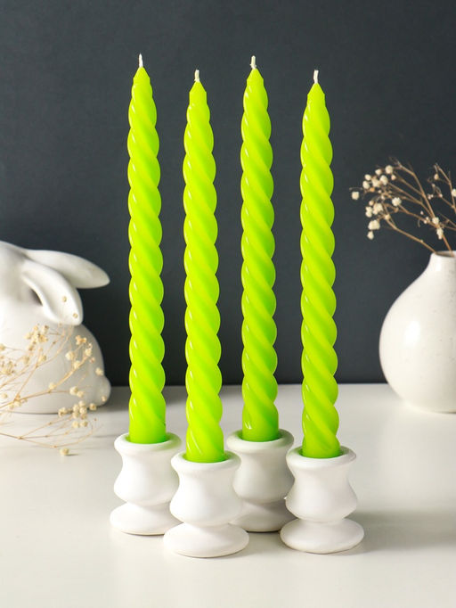 • Набор свечей витых, 2.3×24.5 см, 5 ч, 50 г, 4 шт., зелёный