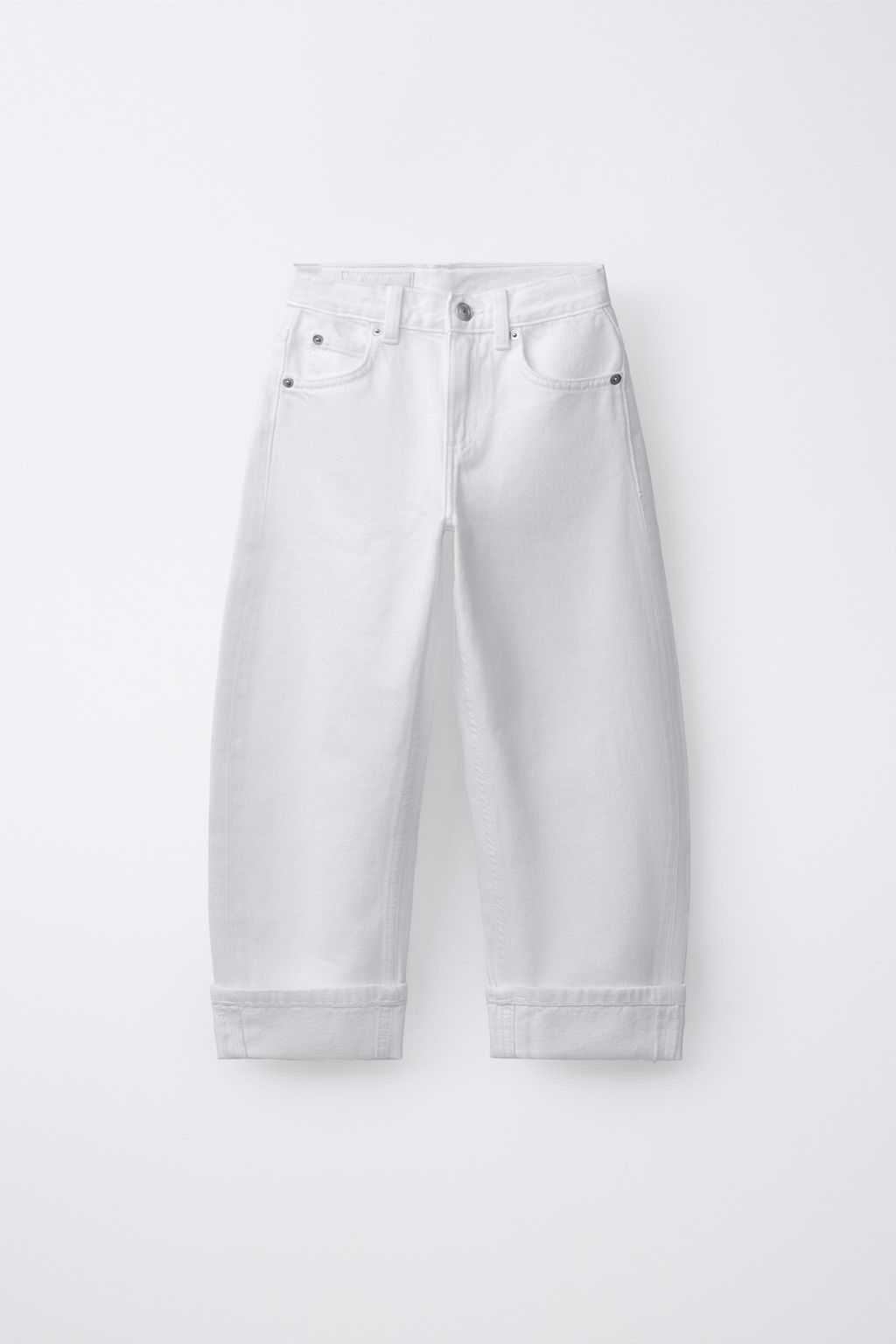 • JEANS BARREL BAJO VUELTA / Blanco