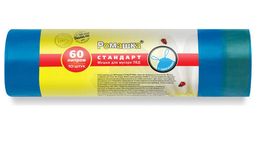 Мешки для мусора в рулоне с завязками (60 л, 10 шт, синие, ПВД, 25 мкм, 60х68 см) Ромашка ЗВС6010С изготовлены из полиэтилена высокого давления, синего цвета, с ароматом ванили.