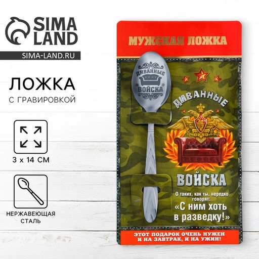 • Цена за 3 шт. Ложка чайная с гравировкой Диванные войска, h=14 см
