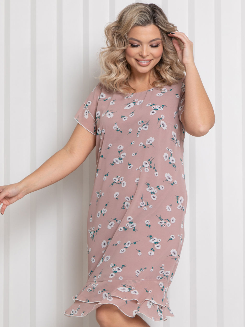 Платье А - силуэта из шифона с цветочным принтом на подкладе из трикотажа.
