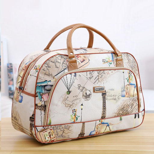 Стильная дорожная сумка из прочной экокожи с ярким декоративным принтом.