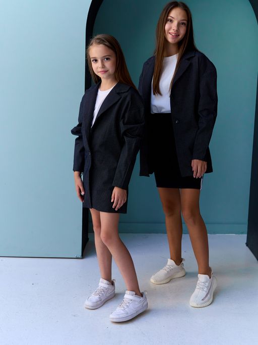Жакет для девочки из текстиля прилегающего силуэта, с втачными рукавами рубашечного покроя, отложным воротником, с лацканами. Застежка на 1 пуговицу. Состав:32% вискоза, 63% полиэстер, 5% лайкра