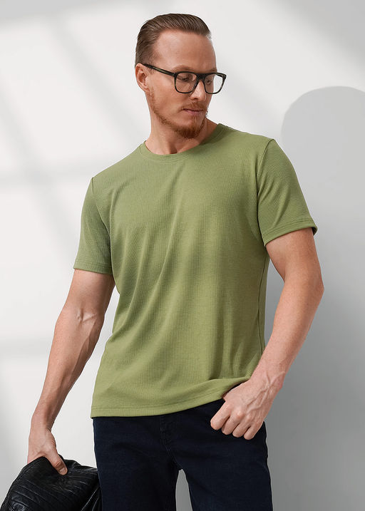 Модная мужская футболка из трикотажного фактурного полотна, с вшивкой сбоку. Подойдет на каждый день в сочетании с джинсами или брюками кэжуал. 68%ПЭ27%Вис 5%ПУ(эластан)
