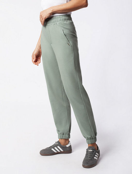 Брюки выполнены из эластичного футера двухнитки. Изделие дополнено боковыми карманами с фирменным логотипом бренда. Пояс на резинке регулируется потайным хлопковым шнурком. Эластан в составе гарантирует комфорт и формоустойчивость.