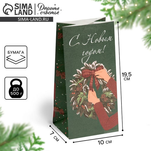 Набор: Нет. Вид упаковки: Универсальная. Для кого: Унисекс. Форма: Прямоугольная. Плотность, г/м: 120. Рекомендуемая нагрузка, кг: 0.5. Допустимый вес вложения, г: 500. Тематика: Новогодняя. Рисунок: Да. Символ года: Нет. Тематика праздника: Новый год. Отделка пакета: Без отделки. Расширение: Без складки. Вид ручки: Без ручки. Форма пакета: Вертикальный. Особенности: Без особенностей. Бесплатная доставка: Да. Наша разработка: Да. Размеры товара: 7/19.5/10.