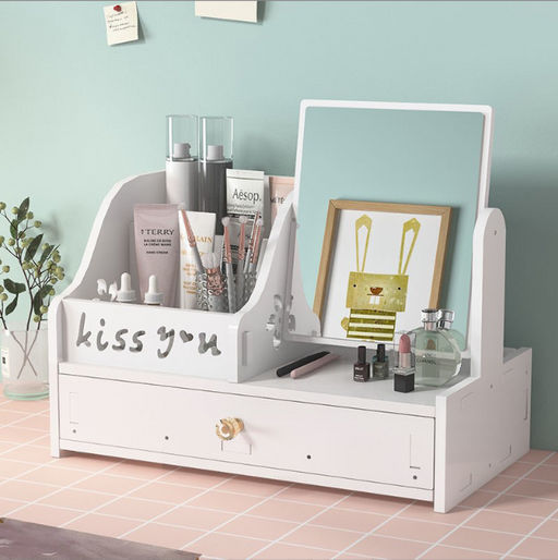 Универсальные комодики для хранения косметики, заколок и бижутерии. Комодик (органайзер) для косметики очень практичный и стильный предмет для женских украшений, косметики и других не менее важных мелочей. Безусловно, каждая женщина/девушка мечтает о том, чтобы все ее обилие косметических принадлежностей и аксессуаров находилось перед глазами, при хранении занимало мало места и не вызывало в комнате хаоса и беспорядка. Все эти проблемы легко решает белый органайзер (комодик) с ящичком и зеркалом! Комодик (органайзер) для косметики займет минимум места. Его можно поставить на полку, на любой туалетный столик, в случае ненадобности на время убрать в шкаф. Материал: влагостойкий древесно-полимерный эко-материал. Уход: протирайте влажной тряпкой или промойте проточной водой. Сверхпрочная устойчивая к царапинам поверхность, водонепроницаемая и светостойкая, не отслаивается. Такой аксессуар позволит женщине/девушке: * Сэкономить утреннее драгоценное время, благодаря чему Вы сможете посвятить его наведению своей красоты и привлекательности * Убрать аксессуары и всю косметику подальше от детей и домашних животных * Сократить время уборки всей используемой косметики до 2-х минут * Рассортировать все флаконы, тюбики, баночки, емкости, кисти, коробочки и навести полный порядок на туалетном столике. Комод в разобранном виде, с подробной инструкцией, в картонной коробке. Размер упаковки: 36,5 * 25,5 * 4,5 см. Размер Комода: 33,7 * 19 * 21 см