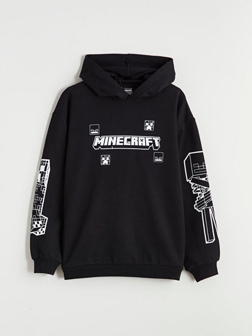• Kap??onlu Minecraft Bask?l? Erkek ?ocuk Sweatshirt