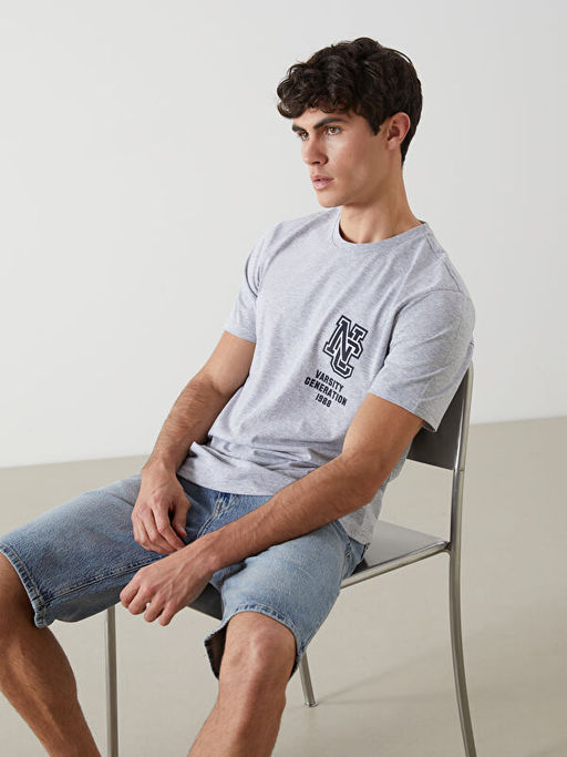 • Bisiklet Yaka K?sa Kollu Bask?l? Penye Erkek Ti??rt