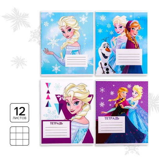 • Цена за 20 шт. Тетрадь в клетку 12 листов, 4 вида МИКС, обложка мелованная бумага, «Холодное сердце»