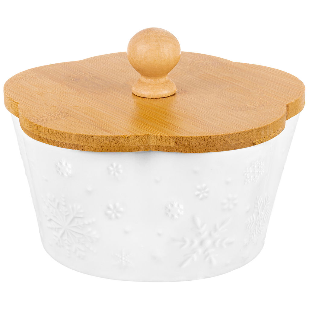 Банка д/печенья 760 мл 14,8*14,8*11,5 см "Снежинки" с деревянной крышкой