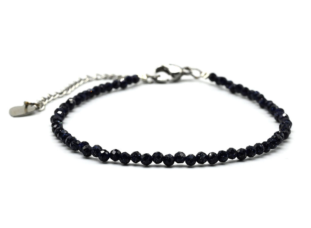 • Браслет из авантюрина шарик граненый 2мм цвет синий, 17см