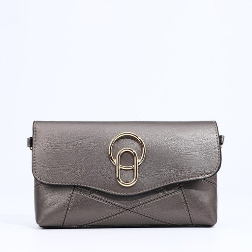 Сумка кросс-боди женская, длинный ремень, на магните, 24×6×14 см, тёмно-серебряная