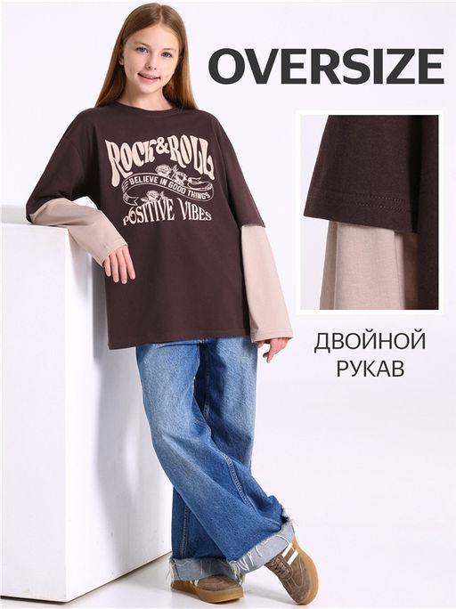 лонгслив,хлопок 100%,кулир / хлопок 100%,темно-коричневый301+бежевый143 / - / Розы с лентой / - / - / -,Лонгслив для девочки выполнен из кулира - лёгкого хлопкового полотна. Изделие свободного силуэта, со спущенными плечами и двойными рукавами, Полочка украшена печатью. Уход: только машинная стирка (руками не стирать!) при температуре 40 градусов, без предварительного замачивания. Изделия с печатью перед стиркой необходимо вывернуть на изнаночную сторону.