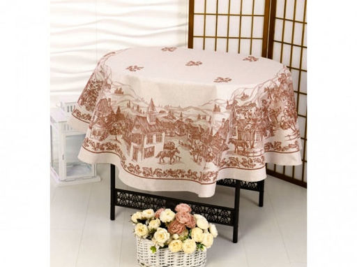 Артикул: 07с24-ЯК Тип ткани: Хлопок Состав: 100% Хлопок Вид оформления: Жаккардовая Рисунок: Американская деревня Цвет: Бежевый Заключительная отделка. (Ткани Моготекс): Без отд. - без отделки Применение: Кухня - Столовая Производитель: Россия Характер рисунка: Сюжетный Оттенок цвета: Оттенки кремового, бежевого Упаковка: пакет пвх Комплектация: скатерть овальная - 1шт Тип изделия: Скатерть Размер скатерти, см: D-178 Плотность, г/м?: 220