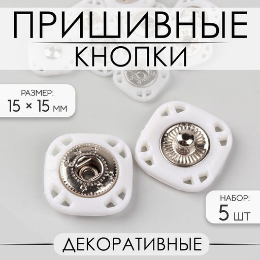 • Кнопки пришивные, декоративные, 15×15 мм, 5 шт., белые
