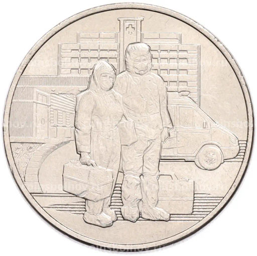 • Монета 25 рублей 2020 года ММД Благодарность самоотверженному труду медицинских работников (COVID-19)