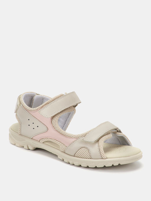 Детские сандалии ЗОРГ-Д светло-бежевого оттенка с розовой отделкой. Верх модели выполнен из прочного текстиля и натуральной кожи. Удобная посадка и надежная фиксация регулируется тремя удобными застежками липучками на пятке, подъеме и носке. Подошва из прочного и легкого полиуретана отличается износостойкостью и прочностью.