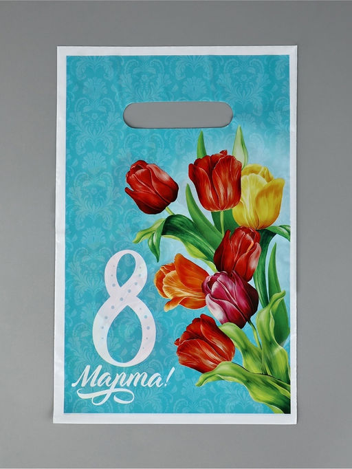 • Цена за 50 шт. Подарочный пакет, полиэтиленовый, с вырубной ручкой, 8 марта, 20 х 30 см