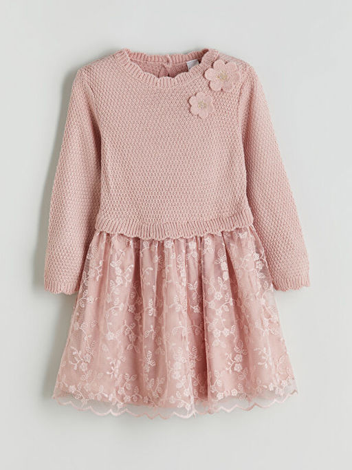 ?i?ek Aplikeli K?z ?ocuk T?ll? Elbise