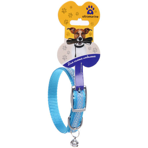 Цена за 4 шт. Ошейник нейлоновый "Калипсо" 1,5*38см с колокольчиком, цвет голубой Ultramarine