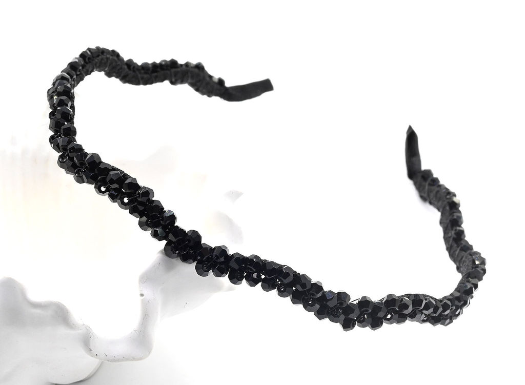 Тонкий ободок для волос украшенный цирконами в ювелирной огранке.