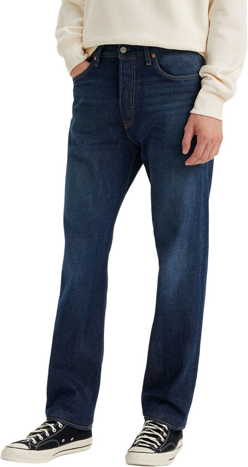 Мужские джинсы 501 Levis Slim Taper. Легендарный прямой крой с ширинкой на пуговицах и аутентичный внешний вид. Прямой крой по всему объему бедер, слегка зауженные книзу брючины и фирменная ширинка на пуговицах. Можно носить во всю длину или подвернутыми, в зависимости от того, что вы предпочитаете. Особенно хорошо сочетается с курткой Levis Trucker и простой футболкой с круглым вырезом для создания классического американского образа. Пуговица на металлической стойке с логотипом Levis. Классический стиль с пятью карманами. Фирменный лейбл Levis и дугообразные строчки на задних карманах. Нашивка с культовым логотипом Two Horse Pull, олицетворяющим прочность.