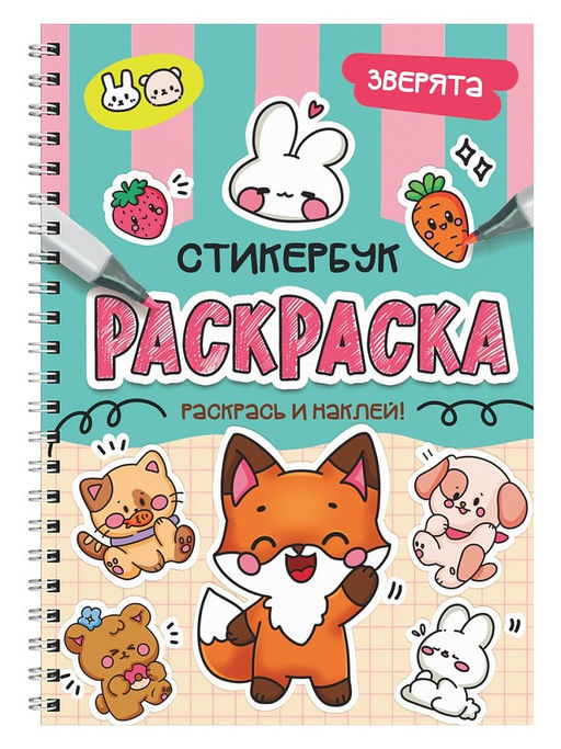 Раскраска - стикербук Проф-Пресс на гребне "Зверята" (35711-6) А5, 24стр.
