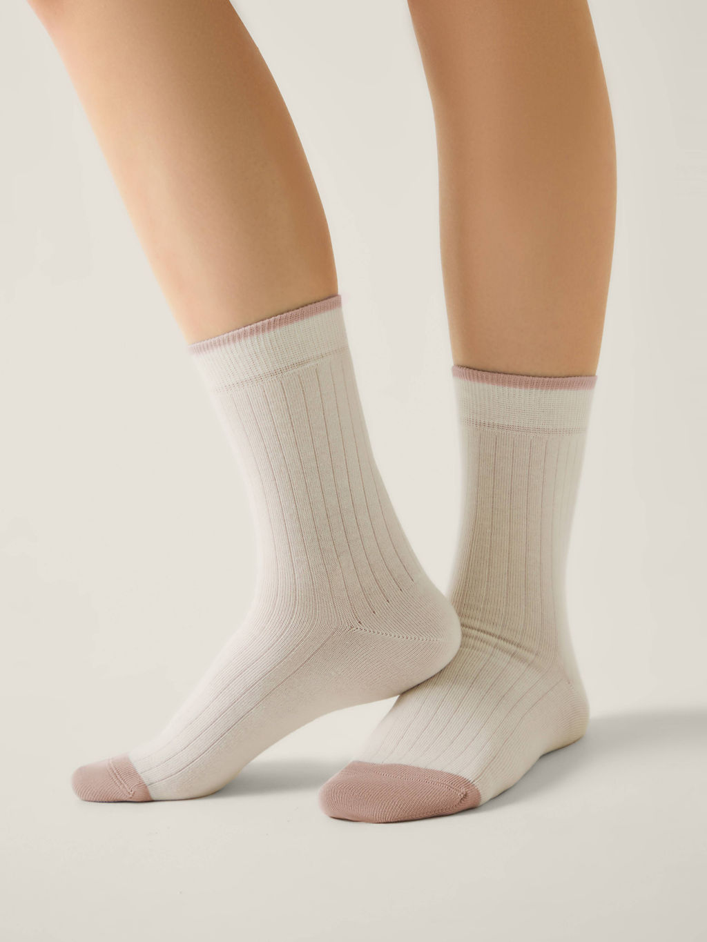 Носки женские CONTE ELEGANT CLASSIC, р.23-25, 785 молочный-пепельно-розовый хлопок 70%, полиамид 28%, эластан 2%