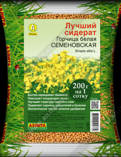 КОЛ-ВО/ВЕС семян в пакете: 200г Отличный медонос, привлекает большое количество пчел и шмелей. Одна из лучших культур для использования биомассы в качестве зеленого удобрения. При заделке в почву быстро разлагается и обогащает почву комплексом макро- и микроэлементов, очищает её от возбудителей болезней и вредителей, активно подавляет развитие сорняков. Эффективное, малозатратное, экологически чистое средство для повышения плодородия и улучшения структуры почвы.