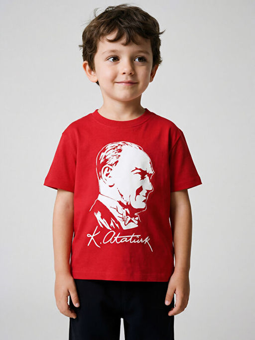 Bisiklet Yaka Atat?rk Bask?l? Erkek ?ocuk Ti??rt