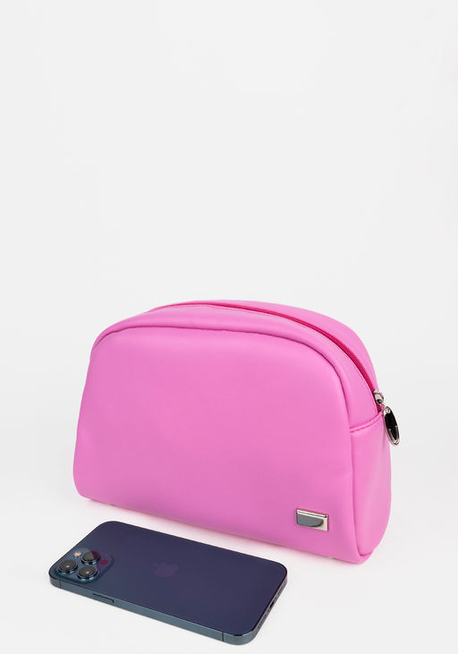 Удобный кейс для косметики из гладкой экокожи в ярко-розовом оттенке