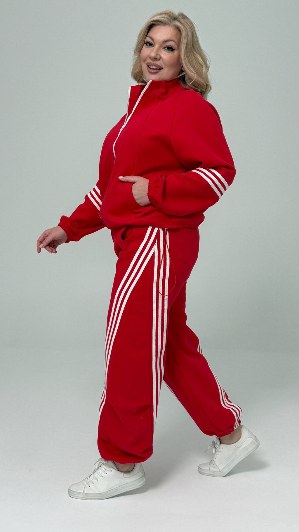Костюм спортивный с тремя полосками красный­