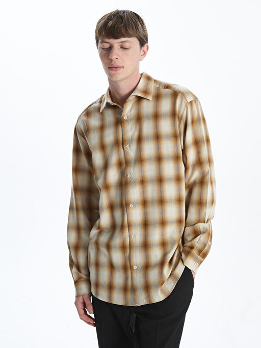 Regular Fit Uzun Kollu Ekose Gabardin Erkek G?mlek