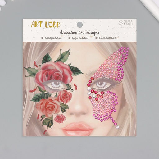 Украсьте лицо изящным крылом бабочки, усыпанным сияющими стразами. Эта самоклеящаяся аппликация с розами создаёт мгновенный эффект роскоши и не требует специальных навыков для нанесения. Просто снимите защитный слой и прикоснитесь к коже мерцающий акцент готов.