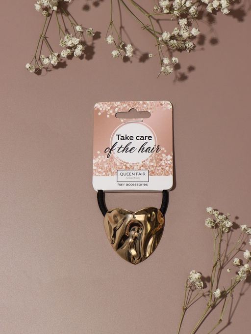 • Цена за 3 шт. Резинка для волос "Залин" сердце, 4 см, золото