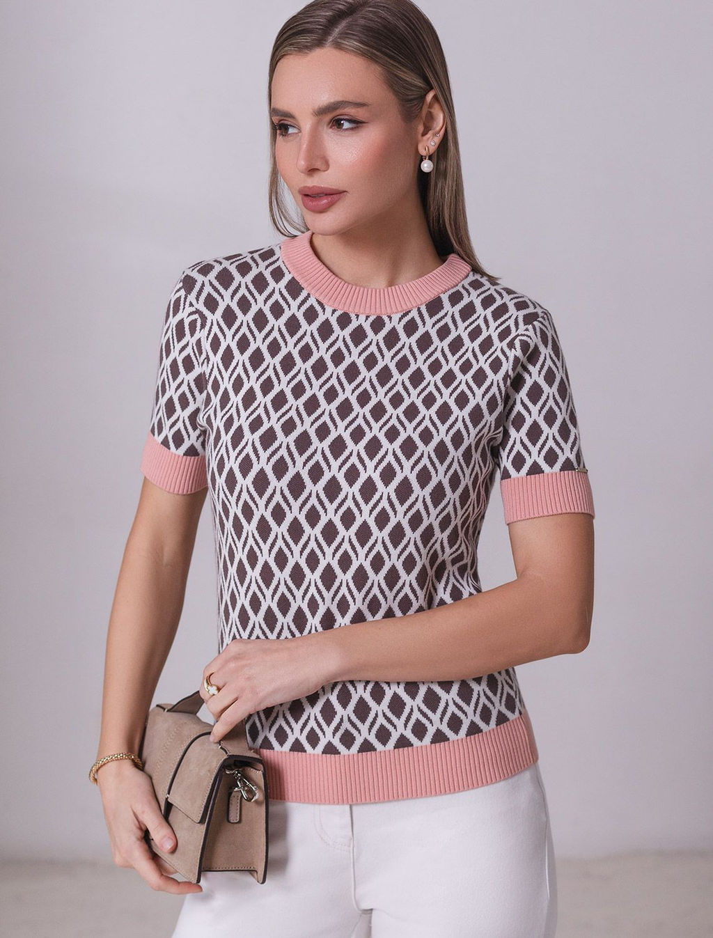 • Джемпер с коротким рукавом жаккардовой вязки с принтом ромб