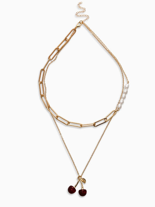 • Кулон-цепь 2 яруса "Вишня", цвет бордовый в золоте 40+50+удл