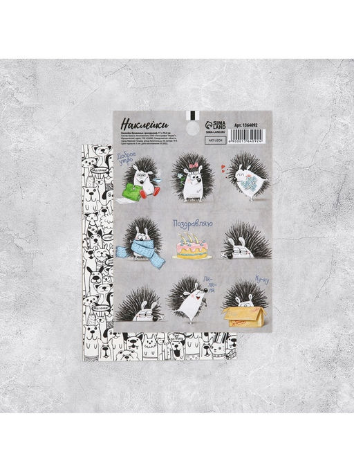Цена за 10 шт. Наклейки детские бумажные «Ёжики», c раскраской на обороте, 10 х 14 см
