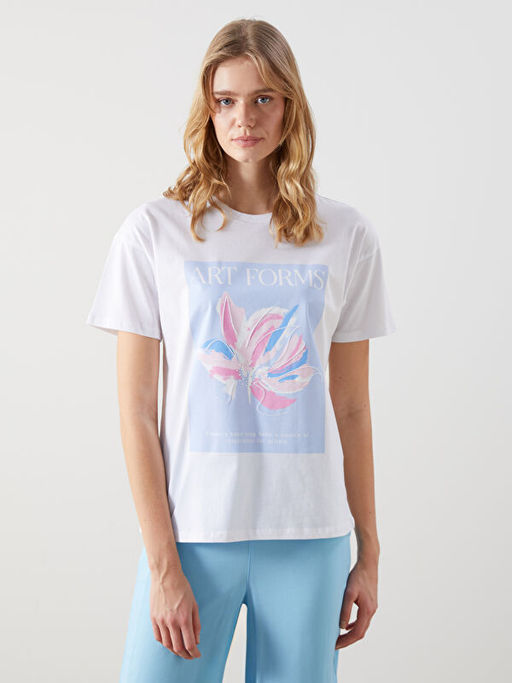 Bisiklet Yaka Bask?l? Kad?n Ti??rt