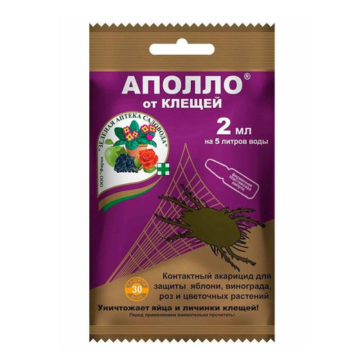 Аполло 2мл от клещей на яблонях, винограде, розах, цветочных горшечных растениях