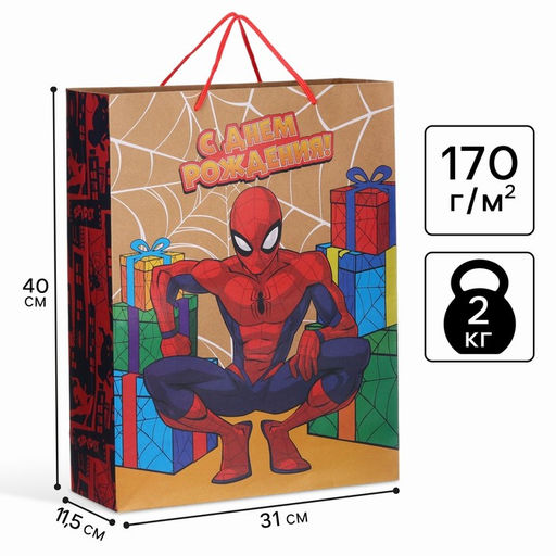 • Пакет подарочный крафт «С днём Рождения», 40×31×11.5 см,