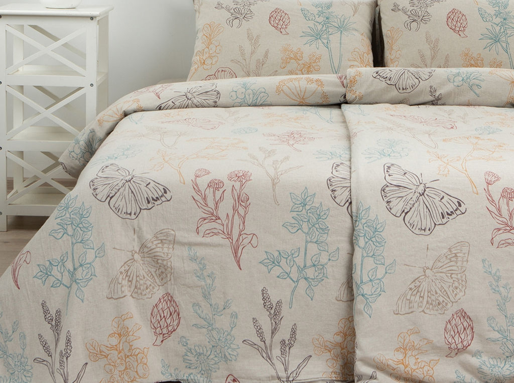 Размер общий: 2 спальный Артикул: 24С185-ШР/у/уп.кор. Тип ткани: Полулен Состав: 70% Хлопок, 30% Лен Вид оформления: Гладкокрашеная (Однотонная), Набивная (С рисунком) Пододеяльник, см: 175*215 Простыня, см: 200*240 Рисунок: 6458 Цветориум Цвет: 1 Применение: Спальня Производитель: Беларусь Характер рисунка: Животный мир, Растительный Оттенок цвета: Натуральный льняной , Оттенки кремового, бежевого Упаковка: картонная коробка + плотный пвх пакет Тип простыни: без резинки Застежка: прорезь Комплектация: Наволочки 2шт, Пододеяльник 1шт, Простыня 1шт Тип изделия: Комплект постельного белья Наволочка, см: 70*70 - 2 шт Плотность, г/м?: 155