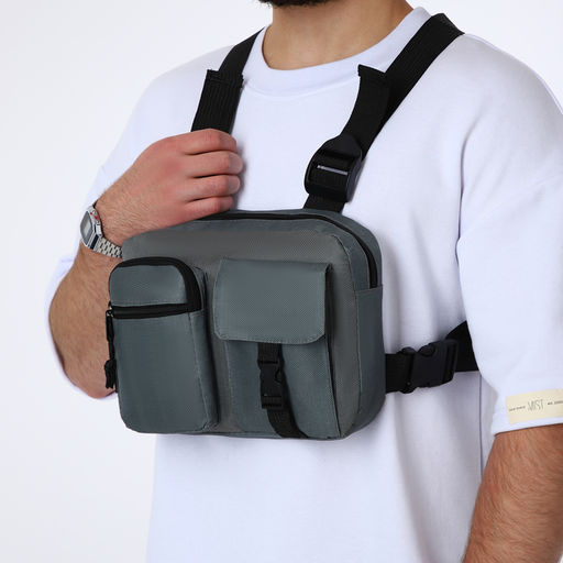 • Сумка нагрудная на молнии, 2 наружных кармана, 21×3.5×16 см, серая