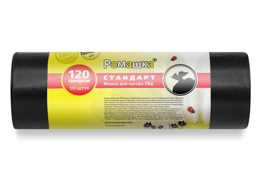 • Мешки для мусора 120л, 70х110см, 25мкм, рулон 10шт., ПВД "Ромашка"