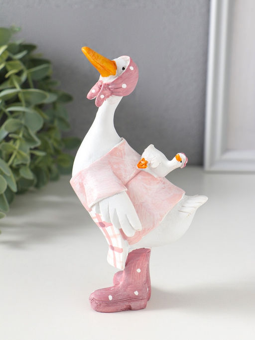 Фигурка полистоун «Гусыня в розовой косынке, с малышом на спине», 9×6.5×15 см