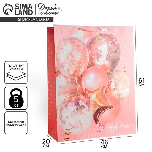 • Пакет подарочный ламинированный, упаковка, «Поздравляю!», XXL 61 х 46 х 20 см