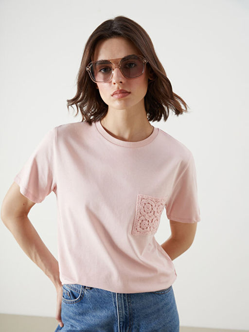 Bisiklet Yaka Dantel Cepli Kad?n Ti??rt